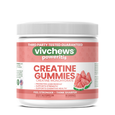 vivchews creatine monohydrate gummies support lean muscle, strength and cognitive performance in a clean, easy-to-take natural watermelon gummy that feels more like a treat than a chore. Whether you’re in the gym, in the office, or just trying to keep up with life, creatine helps your body think sharper and move stronger.*