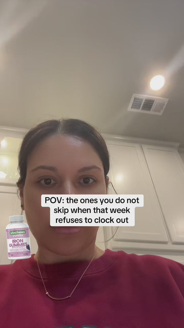 When you’re tired in that bone-deep, can’t-fake-it-anymore way, not sleepy, but drained vivchews iron gummies are for you. This is your daily extra strength iron support designed for the woman who keeps going even when her energy tapped out three tasks ago.